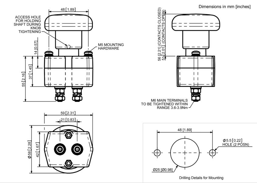 ED80主要用于电池驱动车辆,但也适用于静态电源系统。它能够在紧急情况下安全地破坏满载电池电流。ED80易于安装(参见钻孔细节),并使用附带的M5 posidrive安装螺丝进行固定。